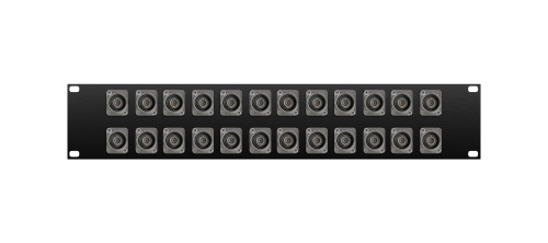 Оконечная видео панель 24-кан. BNC- проходное гнездо, 2U, 19", Premium+, для аналоговых и цифровых видеосигналов UHD-BNC, D-посадка. Комплектующие: разъемы Neutrik NBB75DFGX; панель - 2U-24D.